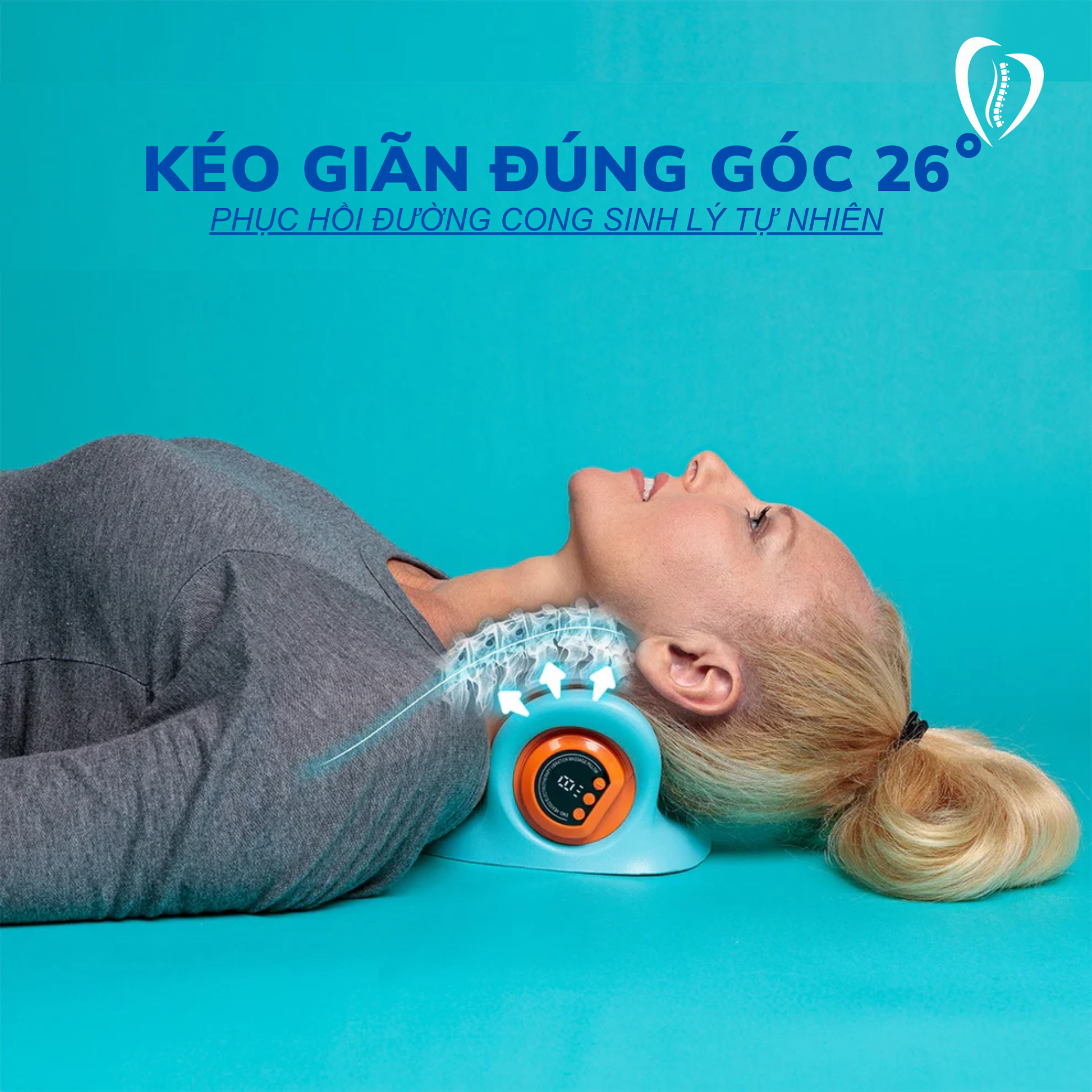 Góc kéo giãn chuẩn 26° giúp giảm áp lực nén lên đĩa đệm, tạo điều kiện cho nhân nhầy bớt chèn ép lên rễ thần kinh. Khi áp lực giảm, cơn đau lan xuống vai – tay cũng dịu dần. Đây là phương pháp hỗ trợ an toàn và nhẹ nhàng cho người bị thoát vị mức độ nhẹ – trung bình.